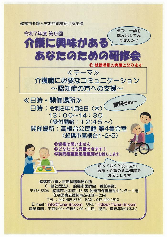 - 介護に興味があるあなたのための研修会を開催します