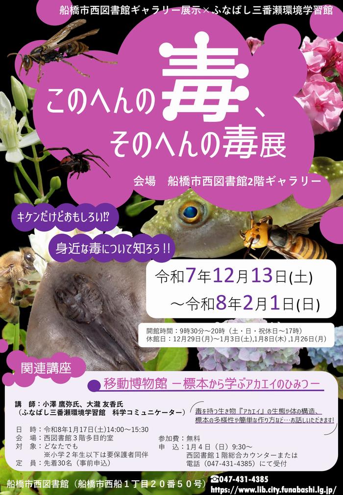 船橋にも生息する毒を持つ植物や生き物について、標本などを展示しています。