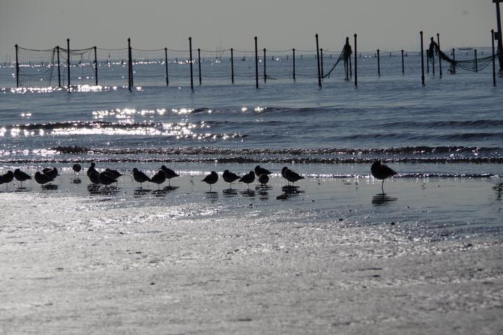 Aquí, además de poder encontrar numerosas especies de peces y mariscos, puede encontrar con numerosas aves marinas a través de las cuatro estaciones ya que es un punto de descanso de las aves migratorias.