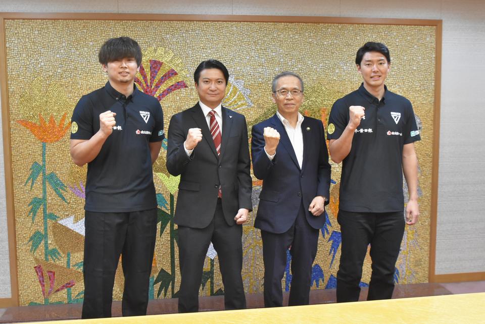 千葉ジェッツふなばしの田村征也代表取締役社長が、西村文男選手、加藤ダニエル選手らとともに、10月8日に船橋市役所を訪れ、松戸徹市長に新シーズンに向けた意気込みなどを語ってくれました!