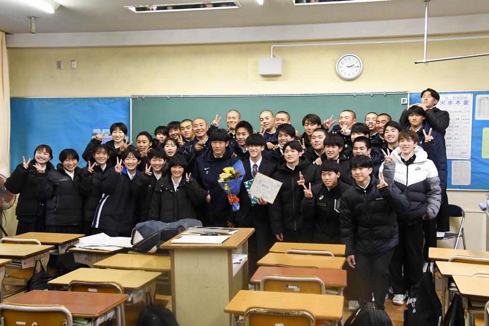 最後のホームルームでは、これから最上級生となる生徒たちに向けて「いい先輩のところには、いい後輩がついてきます。いいチームには、いい結果が表れます。そのことを忘れずに、3年生の最後、悔いなく終われるよう一人一人が自覚を持って頑張ってください」と世界チャンピオンらしいアドバイスを生徒たちに贈りました。
