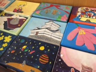 「卒業」と大きく書いてある作品や桜をモチーフにした物が作られていたり、自分の思い出や好きなキャラクターを描いたりしていて思い思いの作品が並んでいました。
