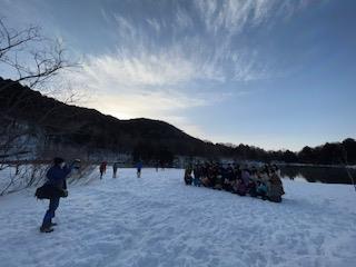 朝の集いを終えると、湯の湖まで朝散歩に行きました。雪の上で写真を撮り、5年生の時に叶わなかった雪国体験のような気分でした。朝食を食べ終えるとホテルの方に挨拶をして、2日目の予定の日光東照宮に向かいます。