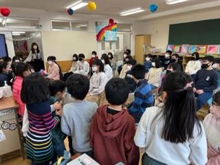 今日は給食がなしの4時間ということで、クラスを見て回ると「お楽しみ会」を行っている学級がたくさんありました。イス取りゲームや、じゃんけん列車など子供たちがやりたい遊びを最後に楽しんでいました。タブレットを活用してお楽しみ会をおこなっている学級もあり、遊び方にも工夫がたくさんあり子供たちはとても楽しそうでした♪