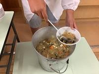 具だくさん味噌汁を食べると、心が温まって、地産地消にもなって食べていてとても気分が良かったです。鰯の蒲焼き丼は、味がとてもしみていて、おかわりする人がたくさんいました。鰯が苦手な人も多いですが、甘くてやわらかくて骨も食べれて、子ども達に大人気のメニューでした。あじさいゼリーはきれいでおいしかったです。