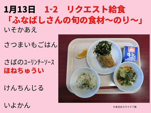 給食写真の下のスライド枚数はそのお知らせになります。