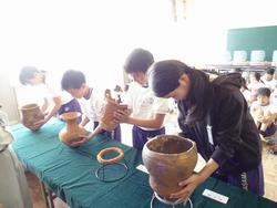 5月15日、6年生が千葉県教育庁文化財課の方々を講師に迎え、「土器ッと古代〃宅配便〃 火おこし体験」を行いました。縄文時代の人々の暮らしを想像しながら、一生懸命火種を作り、麻玉に火がついたときは、みんな大喜び。また、本物の土器をさわらせていただくなど感動の体験となりました。