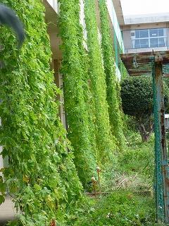 6月に植えたゴーヤが順調に伸び、緑のカーテンが完成しました。また、実もたくさんつけ大収穫となりました。4年生の総合学習の時間にゴーヤチャンプルを作る予定です。夏場の水やり、台風などで大変でしたが、元気に伸びる姿(校舎の3階まで伸びたところもありました)は、ちょっとした感動と涼しさを与えてくれました。