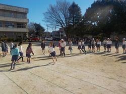 業間休みに行っている体力向上タイムの種目が1月より「長縄」になりました。表校庭、裏校庭でみんながジャンプしています。寒い日が続きますが、子どもは風の子、元気に外に出て楽しみながら体力の向上を図っています。