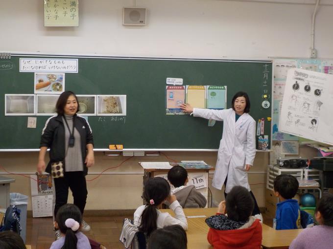 1年生の学級指導「げんきもりもり じょうぶな子」の授業で、栄養教諭の伊藤可愛先生から食べ物の栄養についてのお話がありました。食べ物の栄養は、赤・黄・緑の3つに分けられ、皆さんが元気に過ごすために、どの栄養も大切であることを学びました。お話を聞いたあと、グループで食品を3つの色に分ける練習をしました。働きを考えながら、上手に分けることができました。給食はもちろん、家での食事も好き嫌いをせず、何でも食べて、健康な体をつくっていきましょう。