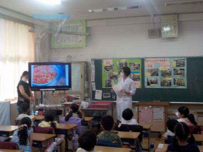 1年生が学級指導で「給食ができるまで」を学習しました。