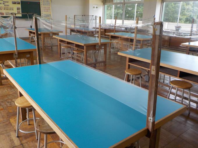 感染症対策として、家庭科室と図書室にシールドを設置しました。