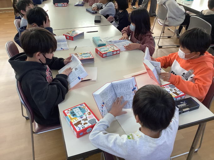 1・2年生は、制限時間内にお題(例:「ふ」から始まる言葉)にあった言葉をたくさん書きだします。