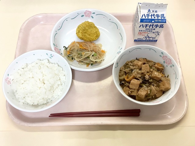 9月3日 牛乳 ご飯 麻婆豆腐 クラゲ入り中華サラダ 大学いも