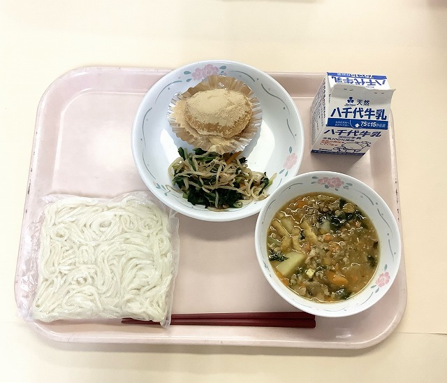 9月22日 牛乳 和風カレーうどん 辛子和え おはぎ