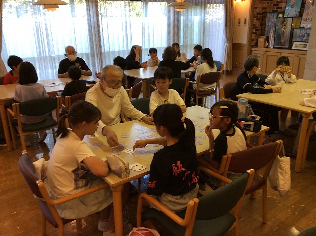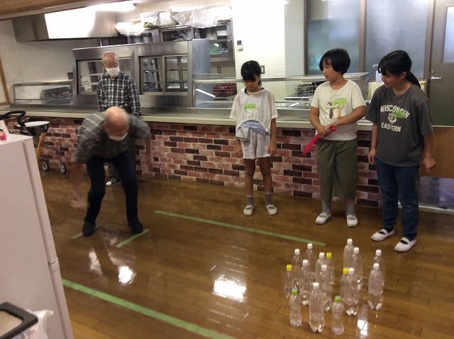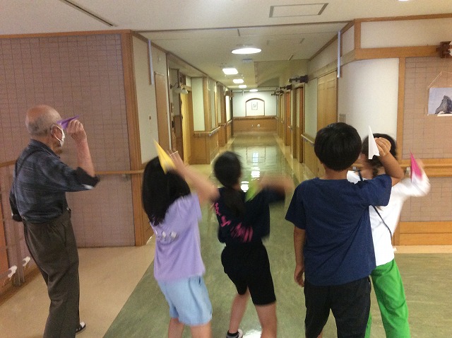 トランプや折り紙、ボウリングや紙飛行機などで一緒に遊びました。