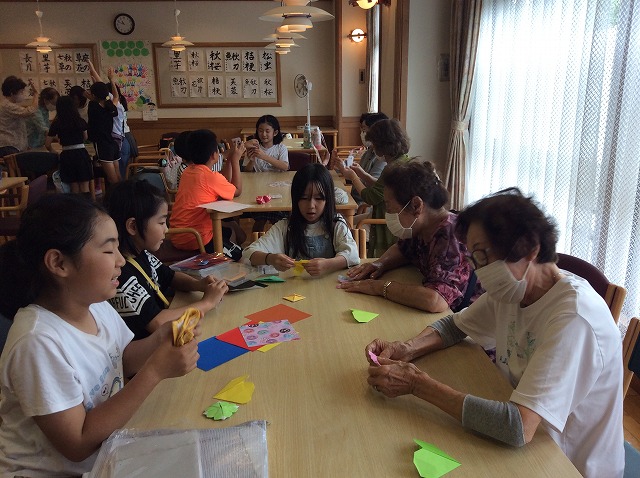 総合的な学習の時間の学習で第2ワールドナーシングホームへ行き、入居者の方々との交流会を行いました。