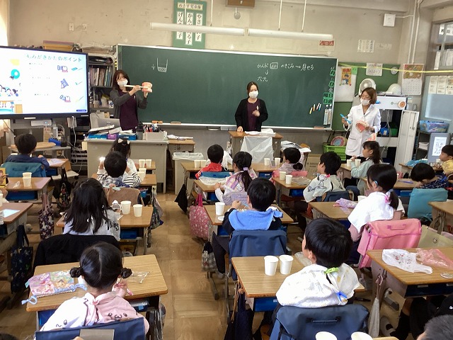 また、歯ブラシの持ち方や、ブラッシングの仕方もわかりやすく教えていただき、子供たちも鏡を見ながら一生懸命にみがいていました。