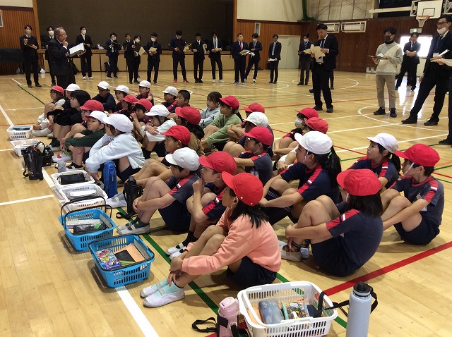 学校に戻ると到着式を行い、1日の振り返りを行いました。