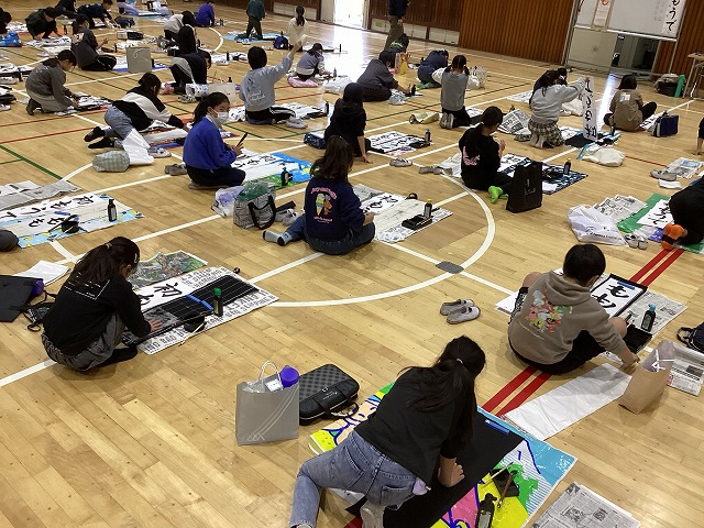 今日は桑島先生を講師としてお招きし、書き初め練習会を行いました。