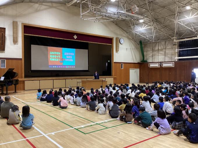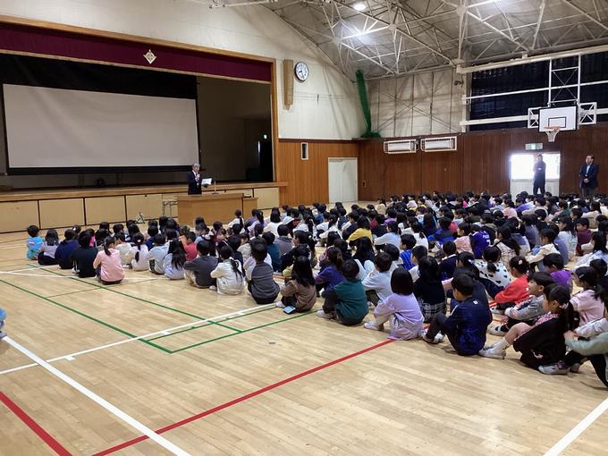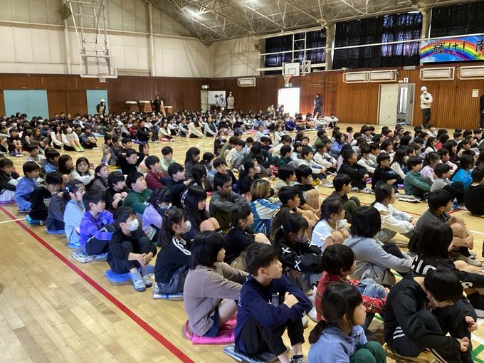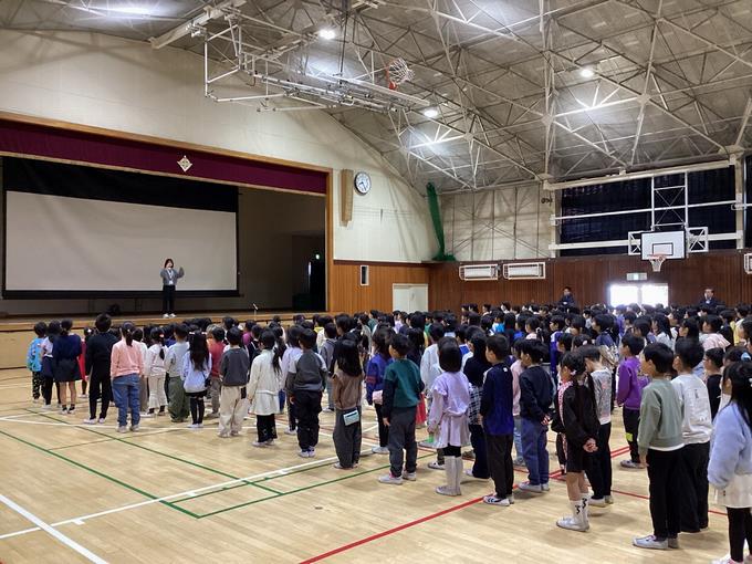 体育館に集まった子どもたちは、静かにお話を聞きながら、これまでの学校生活を振り返る大切な時間を過ごしました。