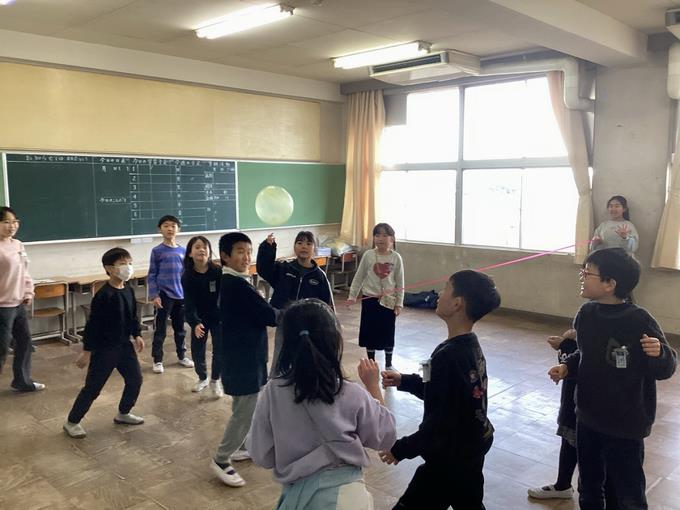 年度の終わりが近づく中、校庭が工事中のため、今回は室内で遊びを行いましたが、