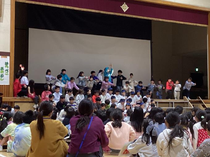 これまで学校をリードしてきた6年生へ、感謝の気持ちを込めて、各学年が心のこもった出し物を披露しました。