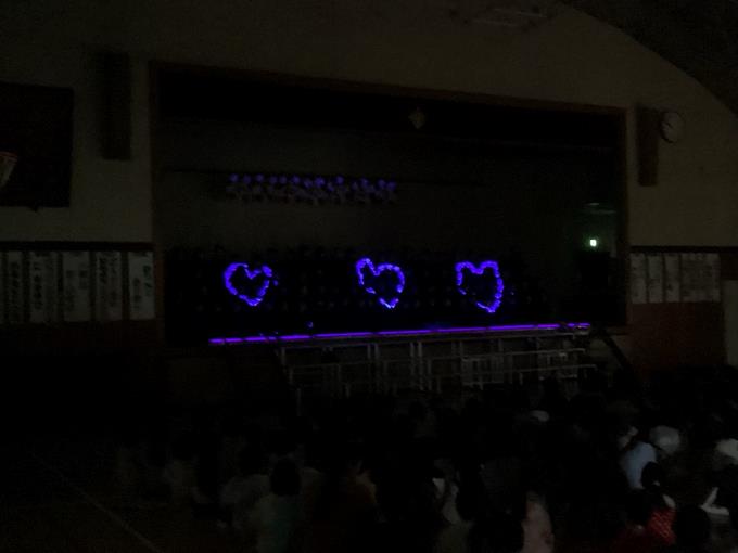 4年生は「カリスマ六年生」。6年生に関するクイズや、ブラックライトを使った幻想的なハンドダンスで会場を魅了しました。