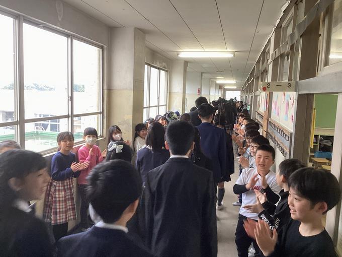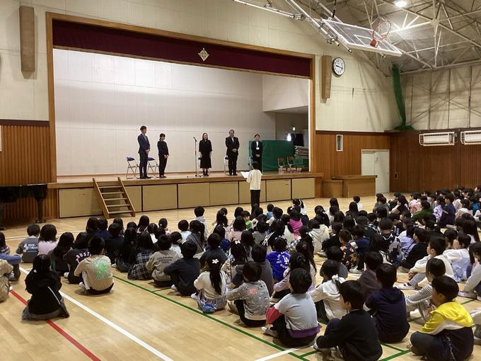 その後、離任式が行われました。これまでお世話になった先生方とのお別れに、子どもたちは感謝の気持ちを込めて話を聞き、心のこもった拍手で送り出しました。