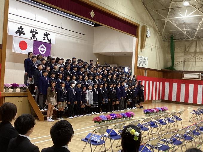 在校生や教職員、保護者に見守られながら、心のこもった温かな式となり、会場は感動に包まれました。