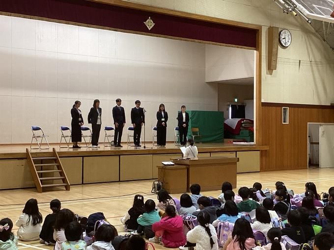 着任式では、新しく本校に赴任された先生方の紹介がありました。子どもたちは興味深そうに話を聞き、新しい出会いに心を弾ませている様子が見られました。