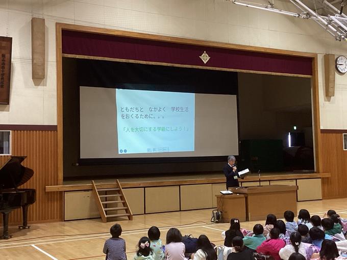 始業式では、校長先生から新年度に向けてのお話があり、子どもたちは気持ちを新たに、これからの学校生活への意欲を高めていました。