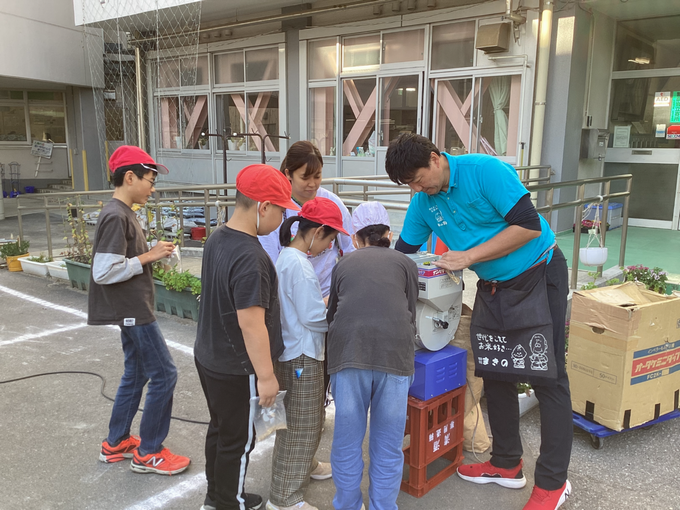 11月24日(金曜日)にお米マイスターの牧野さんが出前授業に来てくださりました。子どもたちは、6月ごろから育てている稲の籾摺りをしました。船橋のお米についての話や、質問への回答など、さまざまなことをお話ししてくださりました。今回収穫したお米は、家庭科の炊飯実習で混ぜて食べる予定です。お米作りを通して、お米を作る大変さや有難さ等、たくさんのことを学びました。たくさんの人に感謝して、これからもおいしいお米を「いただきます。」