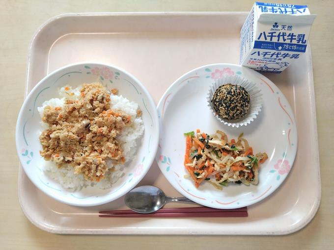 ツナおから丼・小松菜と鶏肉のごま和え・さつまいものごま団子