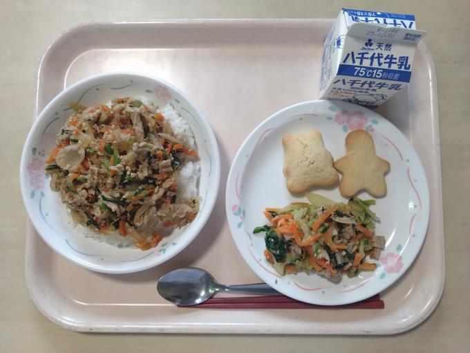 豚肉のプルコギ丼・ごまドレッシングサラダ・しょうがパン(クッキー風)