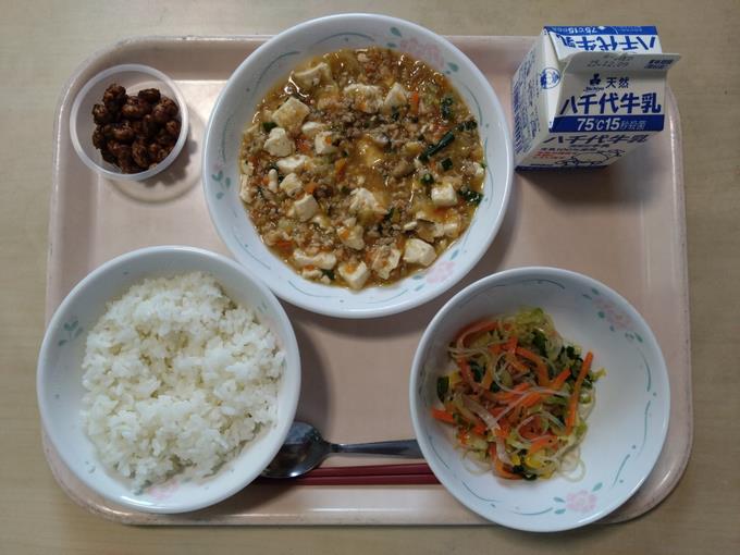 ご飯・マーボーキャベツ・春雨サラダ・ココア豆