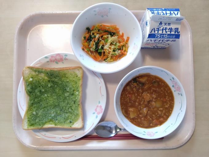 はちみつトースト・チリコンカーン・ツナと海藻のサラダ