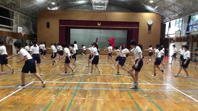 2日(水曜日)、2年生と6年生の体育の授業でチーバくんとチーバくんダンスキャラバン隊をお招きしました。