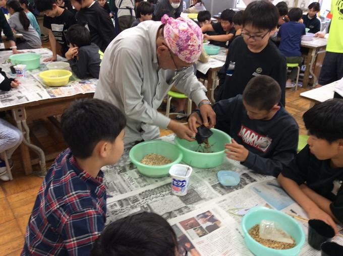 6月に6年生が挿し木をしましたが、残念ながら根が出ているものが例年より少なく、各班で1~2鉢ずつ鉢上げを行いました。