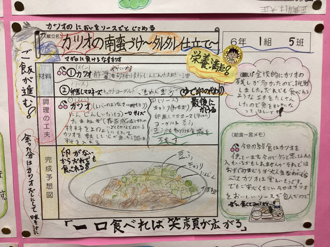 『一口食べれば笑顔が広がる』 6年生廊下前に掲示してます!