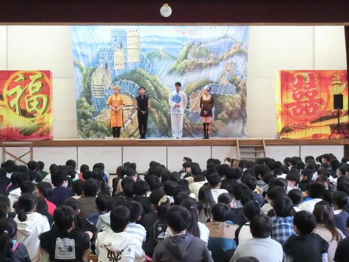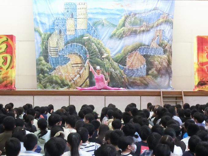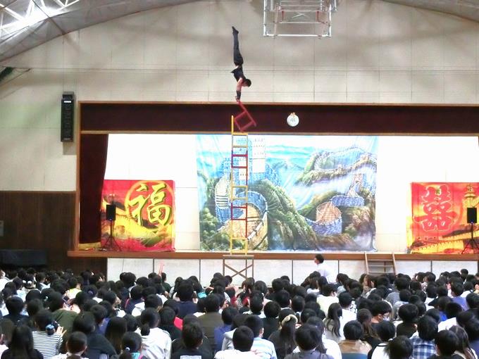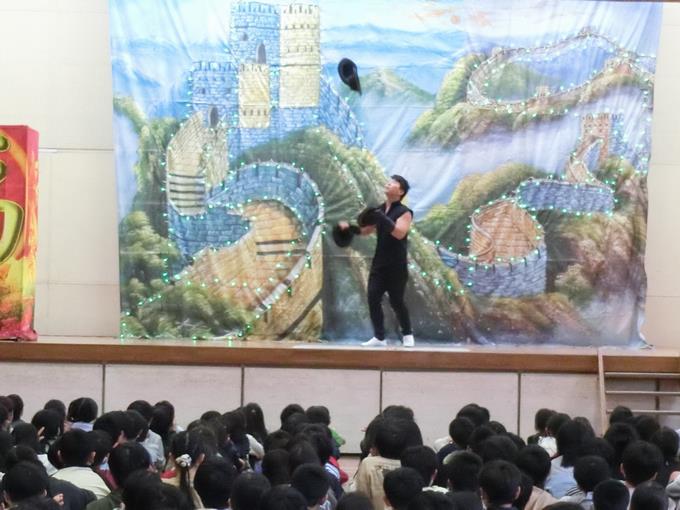 今年の芸術鑑賞教室は、鑑賞だけではなく、生きる上で大切なことも教えてもらいました。メンバーは5歳の頃から、1日15時間におよぶトレーニングを毎日続け、雑技を芸術にまで高めています。「1分間のステージの陰には、10年間のトレーニングがある」とのこと。超人技の裏には、苦しいトレーニングの積み重ねがあるのです。夢をかなえるためには、一歩一歩、努力をすることです。