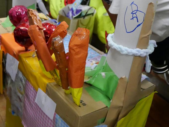 1年生の教室で「前期お楽しみ会」をやっていました。歌を歌ったり、ゲームをしたり、出店(でみせ)遊びをしたりして楽しんでいました。