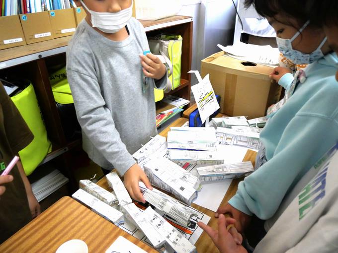 今日10月30日は、本来なら「ハッピー峰っ子フェス2025」を実施する予定でしたが、感染症の流行により実施が延期となりました。それでも「ハッピー峰っ子フェス2025」用に準備していた「峰台オリジナル瓦せんべい」だけは、本日、峰っ子みんなに配付しました。12時55分、各クラスの代表が校長室前に集まってきました。代表の峰っ子たちは、校長室に入るとクラス名と自分の名前をしっかりと言ってくれました。そして、瓦せんべいを受け取るとどの子もニコニコ。