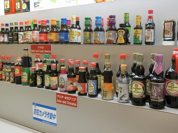 醤油は海外でも大人気だそうです。いろいろな言語のラベルが付いたボトルが展示されていました。