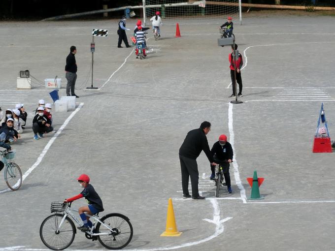 4年生が「交通安全教室」に参加しました。自転車の安全な乗り方を学びました。