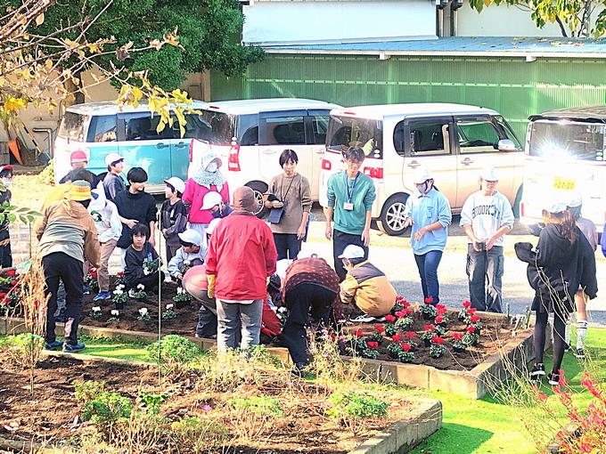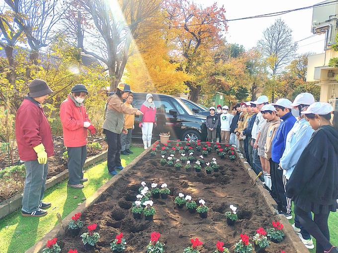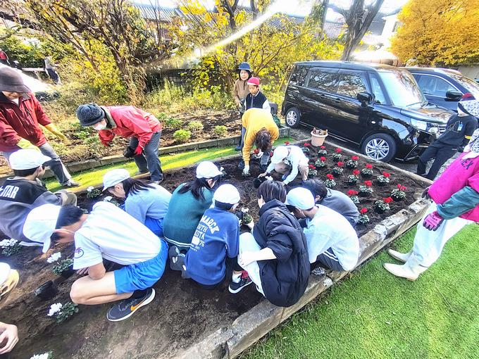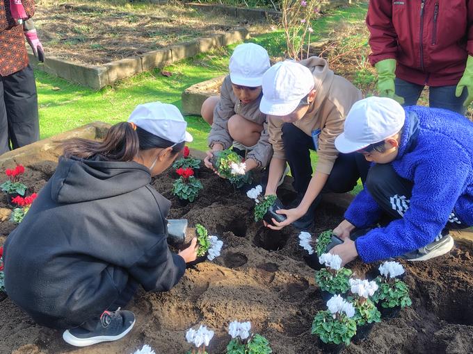 これからの冬、そして春まで「みねっこガーデン」は70周年バージョンを楽しめます。今回の企画では、ガーデニングの会の皆様の他にも理科専科の先生、用務員さんもガーデン作りの準備を手伝ってくれました。70周年記念のガーデン作り、ありがとうございました。