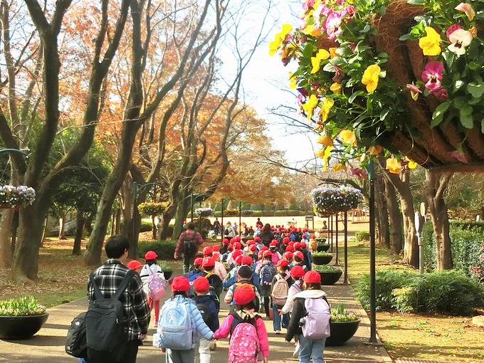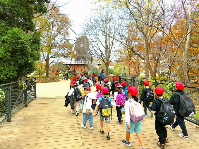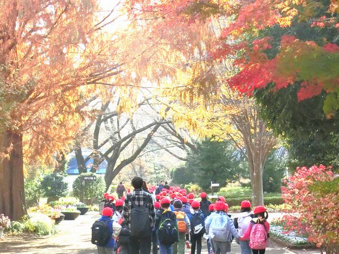 1年生が校外学習でアンデルセン公園に行きました。アンデルセン公園はすっかり秋色。1年生の峰っ子たちは、秋の彩りを感じながら進んでいきます。