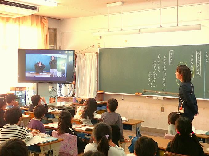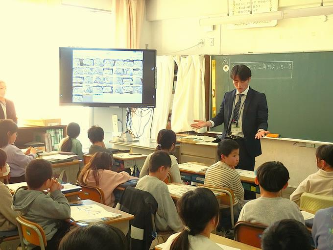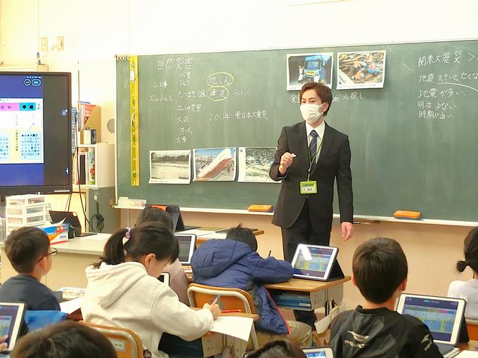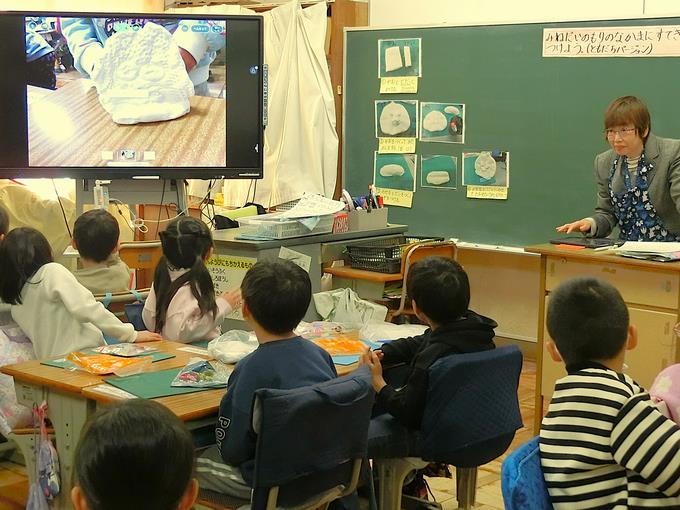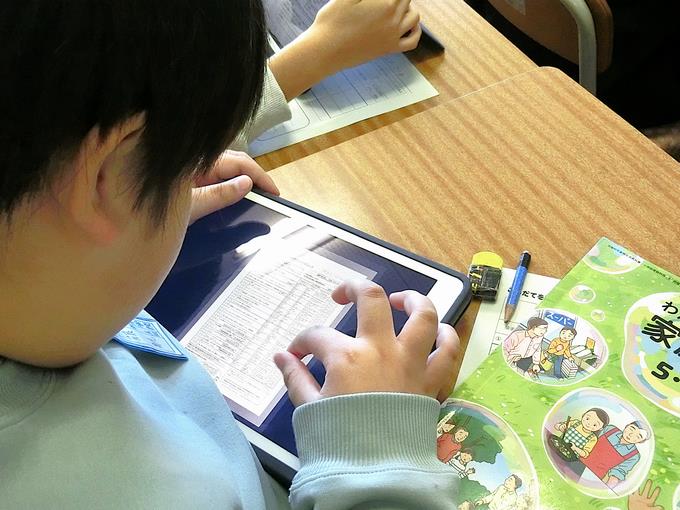 授業では、子供たちが理解を深めることができるように、また、よく考えることができるように、カラー画像の資料やタブレット端末、電子黒板を必要に応じて活用しています。