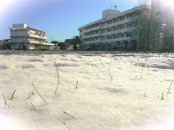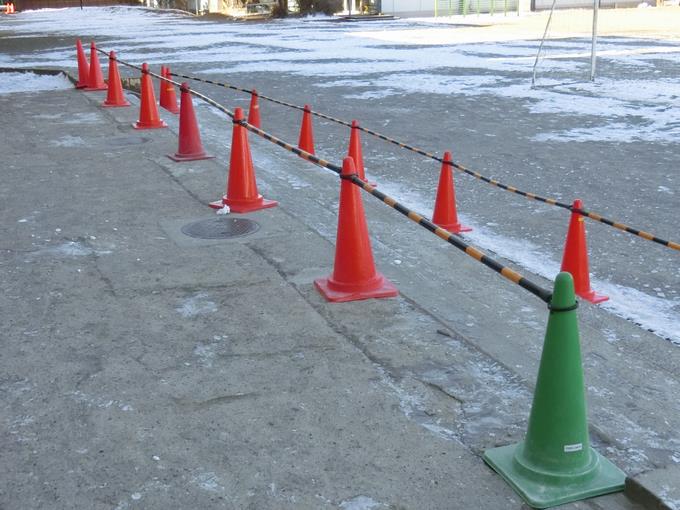高学年昇降口前から校庭へのコンクリート部分は、凍結のため通行禁止となっています。この場所は、峰台小でもっとも寒い場所でもあります。