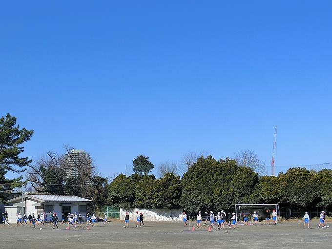 峰っ子たちはというと朝から元気いっぱいで、外で体育の授業。「寒くない!」「まぶしい!」という声も聞こえてきました。縄跳びをしているクラス、サッカーをしているクラス、ハードル走をしているクラス、峰台小では3クラスが同時に校庭で体育をしています。
